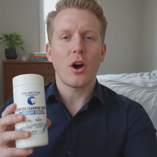 Denture Cleaning Wipes with Adhesive Remover Take the struggle out of removing stubborn denture adhesive. These specially formulated wipes use micro-fibers designed to grip sticky residue and lift it away—quickly, easily, and without mess. Take the struggle out of removing stubborn denture adhesive. These specially formulated wipes use micro-fibers designed to grip sticky residue and lift it away—quickly, easily, and without mess. For best results: Pair with The Denture HyGenie cleaning products.